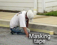 - Masking tape is applied to sidewalk and walls to prevent overspray.